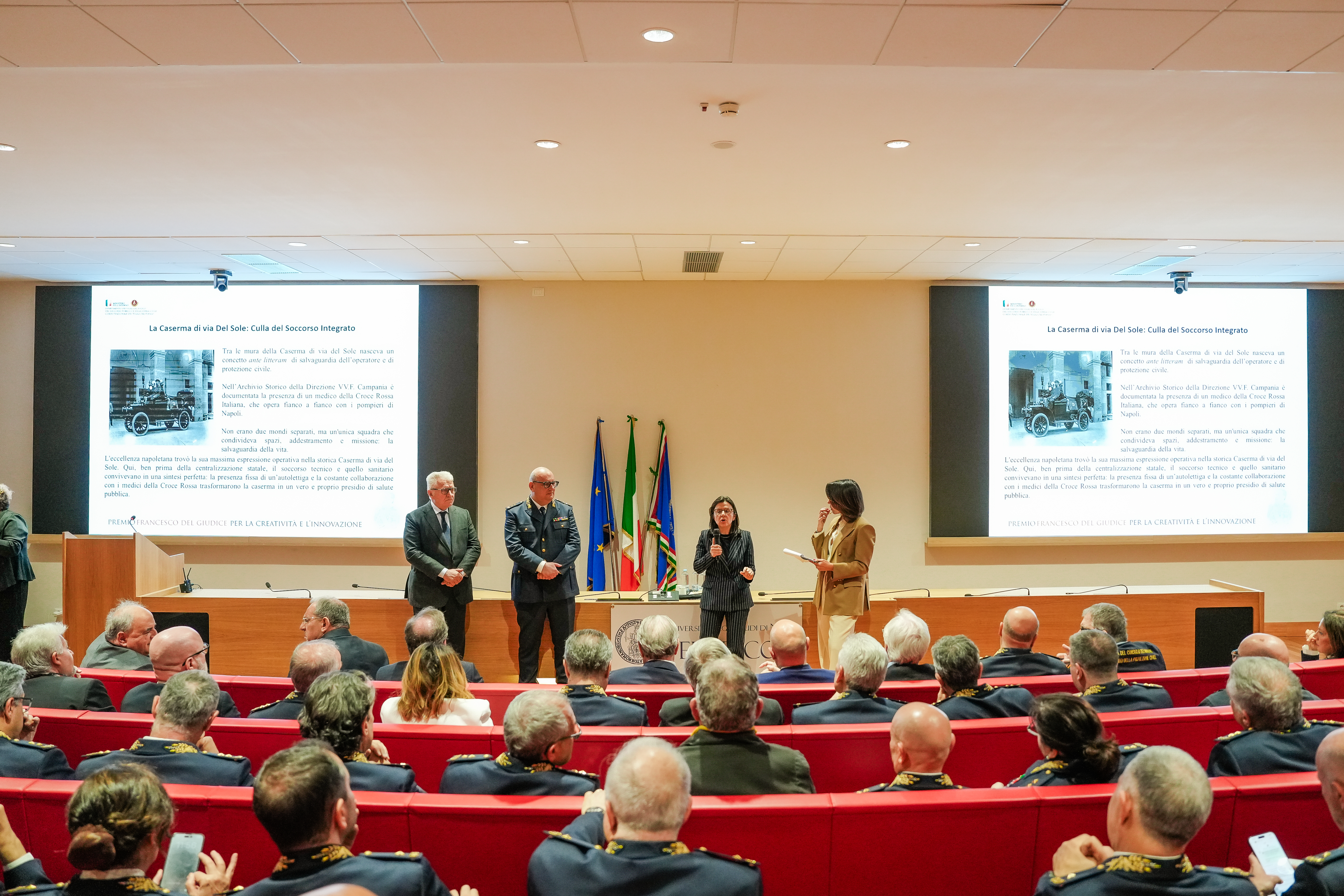 La cerimonia, presentata dalla conduttrice Nunzia De Girolamo e che ha celebrato la Giornata Mondiale della Creatività e dell'Innovazione, ha visto la partecipazione del Sottosegretario all’Interno Emanuele Prisco, del Capo Dipartimento Attilio Visconti, del Capo del Corpo Nazionale Eros Mannino, del Capo Dipartimento della Protezione Civile Fabio Ciciliano, del Capo di Stato Maggiore della Difesa Generale Luciano Antonio Portolano e del Rettore dell’Università Federico II Matteo Lorito.