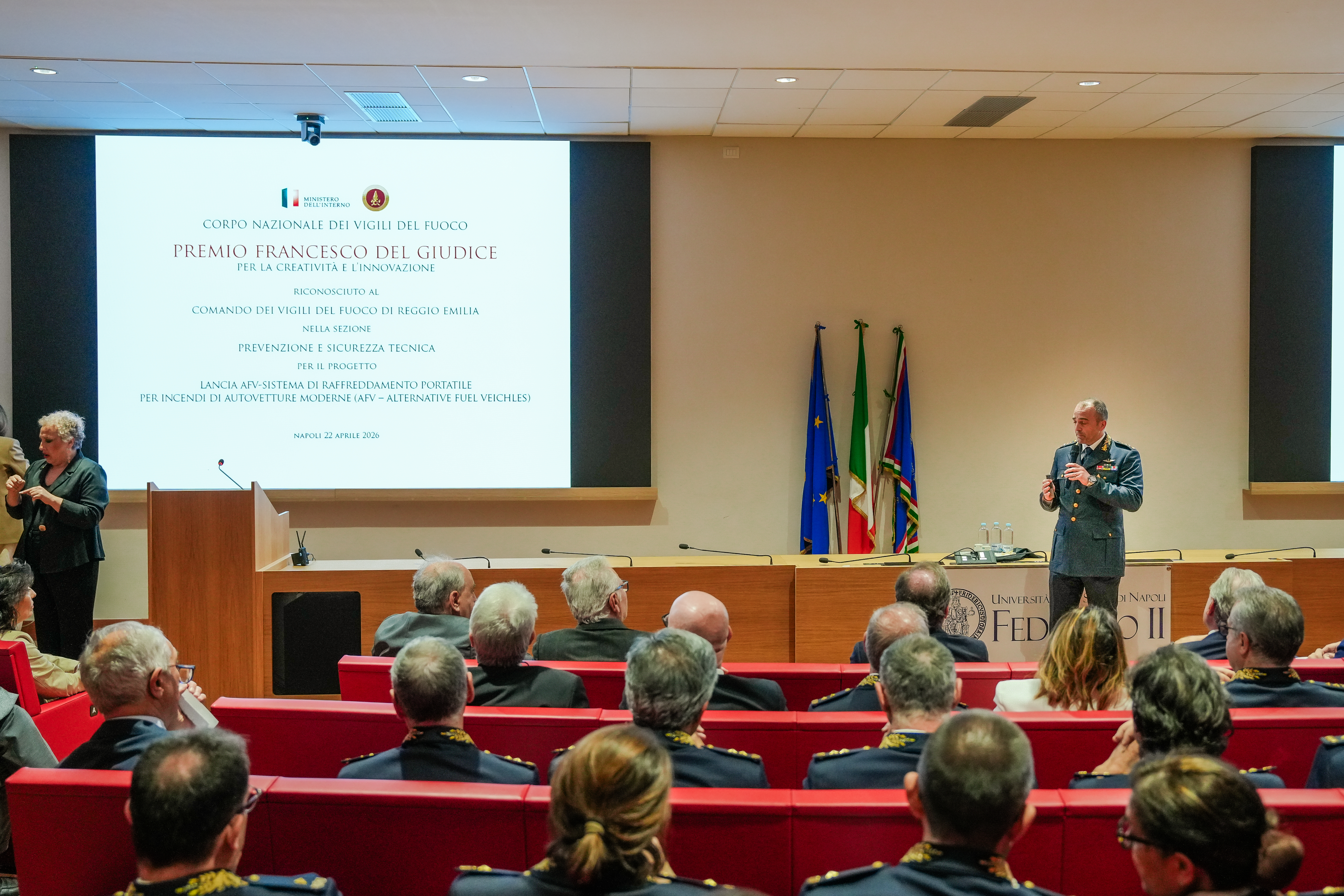 Si è svolta questa mattina all’Università degli Studi di Napoli Federico II – Complesso Scampia, la cerimonia di premiazione della prima edizione del Premio “Francesco Del Giudice”. L’iniziativa, promossa dal Dipartimento dei Vigili del Fuoco, del Soccorso Pubblico e della Difesa Civile, nasce con l'obiettivo di valorizzare i progetti più innovativi sviluppati all’interno del Corpo Nazionale, promuovendo contestualmente la cultura della sicurezza e della prevenzione. Il riconoscimento è intitolato all’ingegnere Francesco Del Giudice (1815-1880), figura di rilievo assoluto nella storia dei pompieri di Napoli e precursore delle moderne tecniche di soccorso.