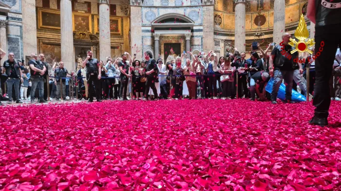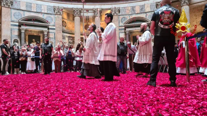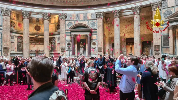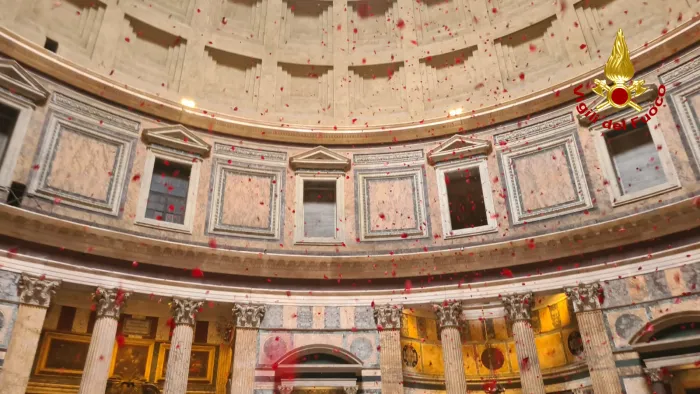 ROMA, STAMATTINA LO SPETTACOLARE LANCIO DI PETALI ROSSI DALLA CUPOLA DEL PANTHEON PER LA PENTECOSTE