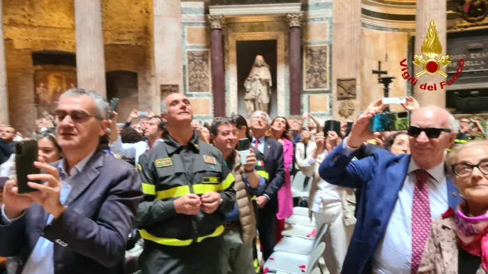Stamattina alla spettacolare cerimonia hanno partecipato i vigili del fuoco del team Speleo Alpino Fluviale che, come oramai accade da anni, hanno lanciato i petali dalla sommità della Basilica di Santa Maria ai Martiri.