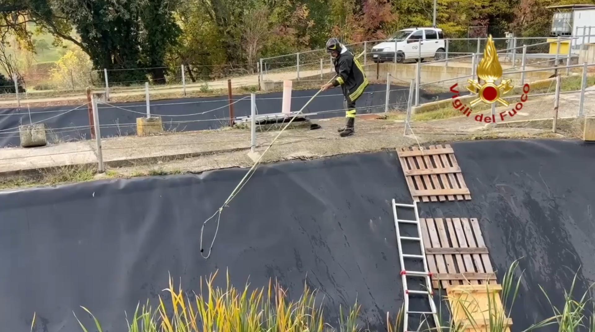 SOCCORSO CAPRIOLO SCIVOLATO NELLA VASCA DI UN DEPURATORE