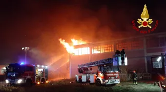 Teverola (CE) - INCENDIO NEL DEPOSITO DI UN’AZIENDA CHE PRODUCE ACCESSORI PER AUTO