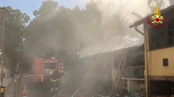 Firenze (FI) - ALTA COLONNA DI FUMO: TRE SQUADRE AL LAVORO IN ZONA CENTRO PER L'INCENDIO DI UN RISTORANTE