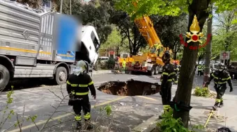 Roma (Roma) - VORAGINE, RECUPERATO CAMION  COINVOLTO