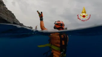 martedì 07 febbraio 2023 - soccorritori acquatici dei vigili del fuoco di la spezia in azione all’isola del tino, nelle acque antistanti porto venere. testate…