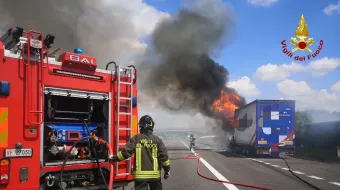 Peschiera del Garda Loc. Autostrada A4 (VR) - IN FIAMME AUTOARTICOLATO LUNGO L'AUTOSTRADA A4