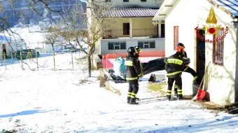 sabato 07 gennaio 2017 - a causa di una bufera di neve, i vigili del fuoco controllano la tenuta delle opere provvisionali effettuate sulla struttura…