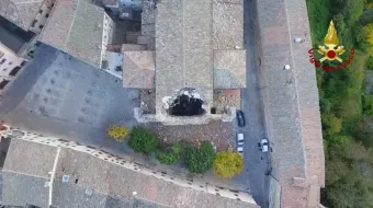 Amatrice (RI) - Drone al lavoro presso la Chiesa di San Francesco
