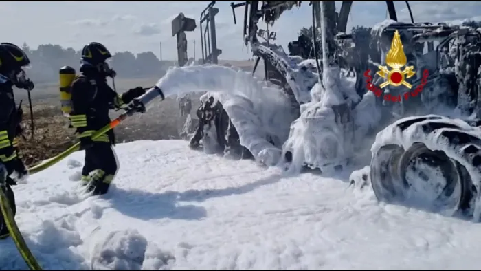 due squadre dei vigili del fuoco sono intervenute oggi a dogheria, località di meldola, per l'incendio di un trattore. le squadre hanno operato, anche con la…