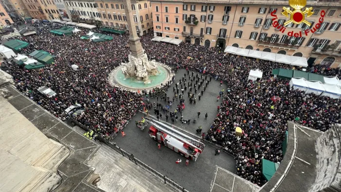 Roma ROMA, IN PIAZZA NAVONA È ARRIVATA LA BEFANA… GRAZIE ALL’ ”AIUTO” DEI VIGILI DEL FUOCO
