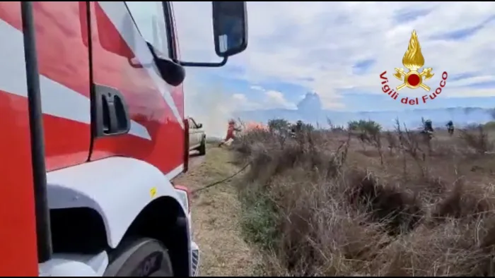 Elmas INCENDIO DI STERPAGLIE NEL CAGLIARITANO