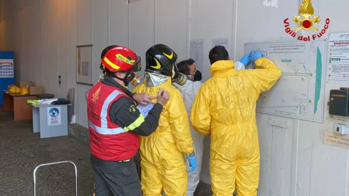 Settimo Milanese NBCR IN AZIONE PER INCENDIO AZIENDA CHE SMALTISCE RIFIUTI ELETTRONICI