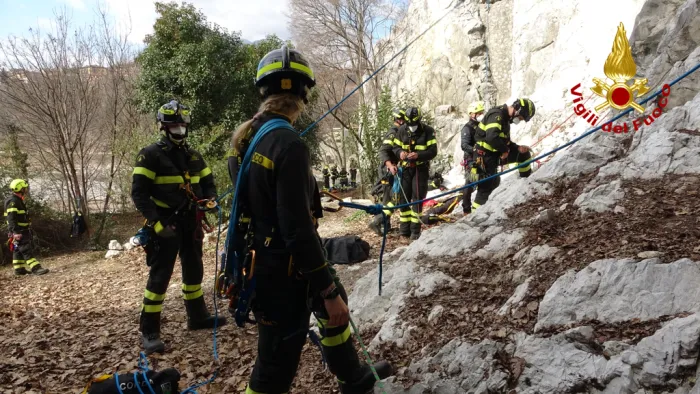giornata di addestramento per gli allievi vigili del fuoco del 91° corso del polo didattico di cagliari impegnati con corde e moschettoni nel corso sulle…