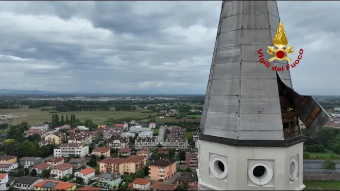 la copertura di metallo della cuspide del campanile della chiesa di san martino a vigodarzere (pd) era stata danneggiata, a causa del violento temporale che si…