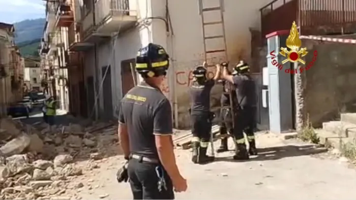 Lamezia Terme INTERVENTO DEI VIGILI DEL FUOCO PER IL CROLLO DELLA FACCIATA DI UN EDIFICIO: NESSUNA PERSONA CONVOLTA