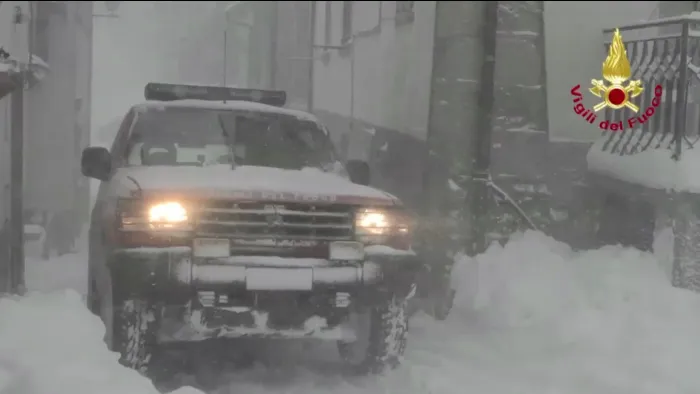 in linea le immagini dall'elicottero dei vigili del fuoco per ricognizione aerea delle zone colpite dalle copiose nevicate