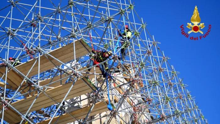 avanzamento dei lavori per la messa in sicurezza della facciata della basilica di san benedetto