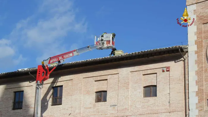 i vigili del fuoco stanno operando per la messa in sicurezza della chiesa della santissima annunziata