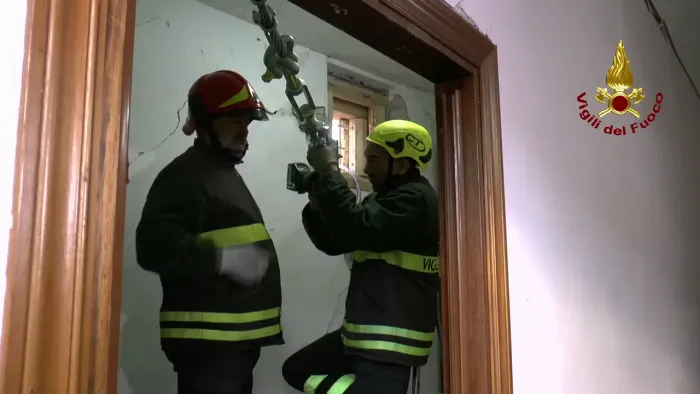 demolizione di un edificio pericolante per il ripristino della viabilità nella strada adiacente