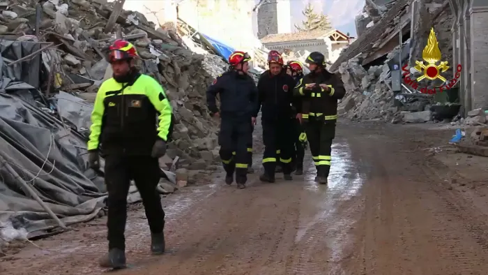 Amatrice visita delegazione vigili del fuoco dalla Slovenia e dalla Croazia