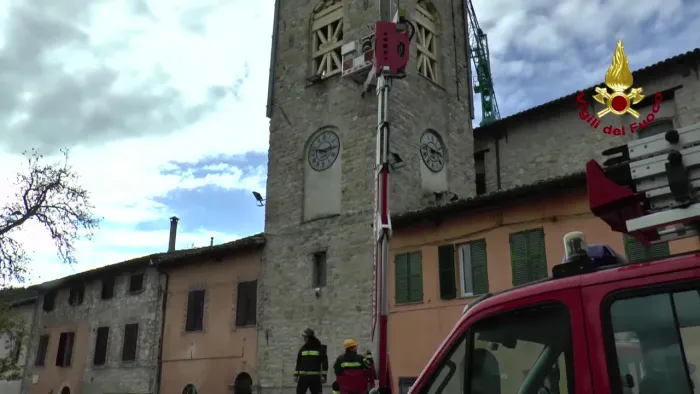 i vigili del fuoco hanno provveduto, mediante posizionamento di angolari e tiranti, alla messa in sicurezza chiesa di san biagio