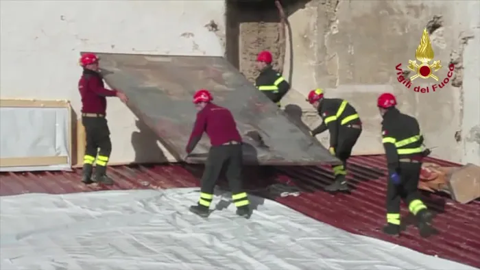 i vigili del fuoco intervengono all'interno della chiesa della madonna di costantinopoli, un edificio del xv-xvi secolo, per il recupero del dipinto della…