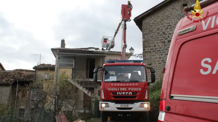 Montegallo Posizionamento di un'opera provvisionale a copertura del tetto