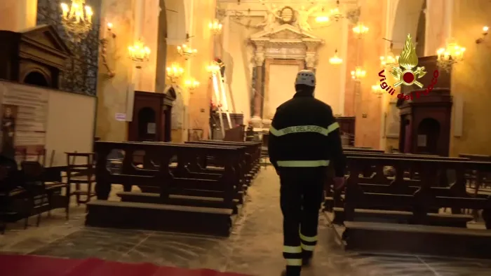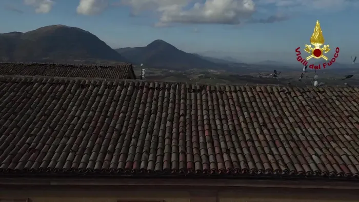 immagini del sopralluogo interno e dall’alto (con drone) effettuato dai vigili del fuoco a camerino presso il teatro storico filippo marchetti, per progettare…
