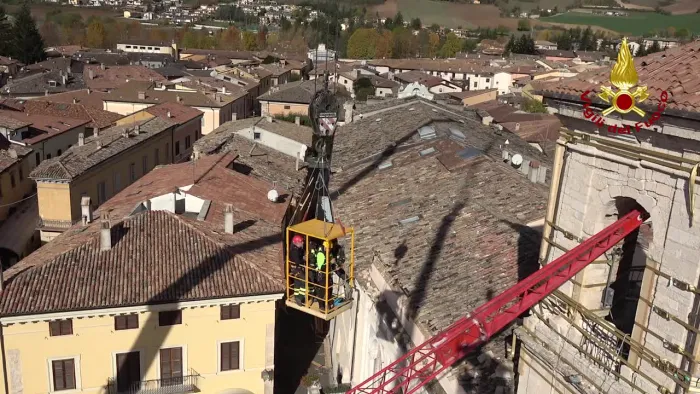 portata a termine con successo da parte dei vigili del fuoco l’impegnativa operazione di recupero della quarta ed ultima campana della torre civica di norcia.