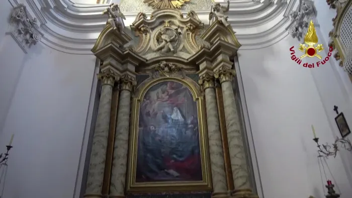 i vigili del fuoco hanno proceduto, questa mattina, presso la collegiata insigne di san martino al recupero della tela " transito di san martino"…