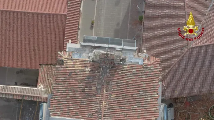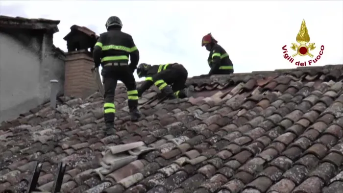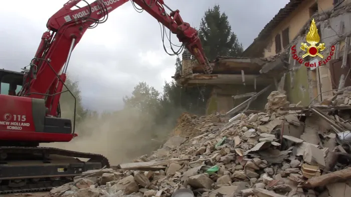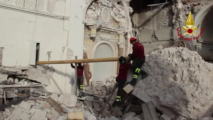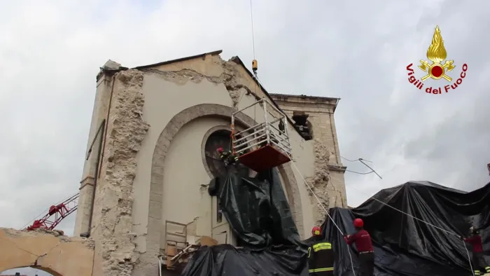 i vigili del fuoco tutelano i beni culturali amatrice - copertura provvisoria macerie chiesa di s.agostino