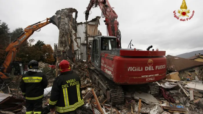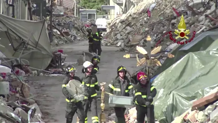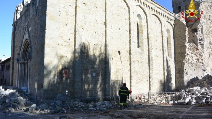 Amatrice Recupero macerie presso la Chiesa di Sant'Agostino