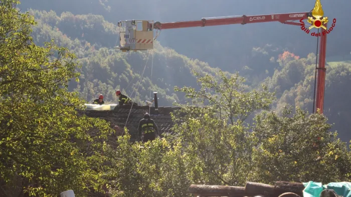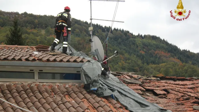 le immagini della copertura di due tetti da parte dei vigili del fuoco