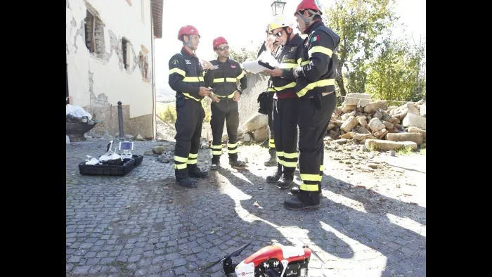 Amatrice Drone al lavoro presso la Chiesa di San Francesco