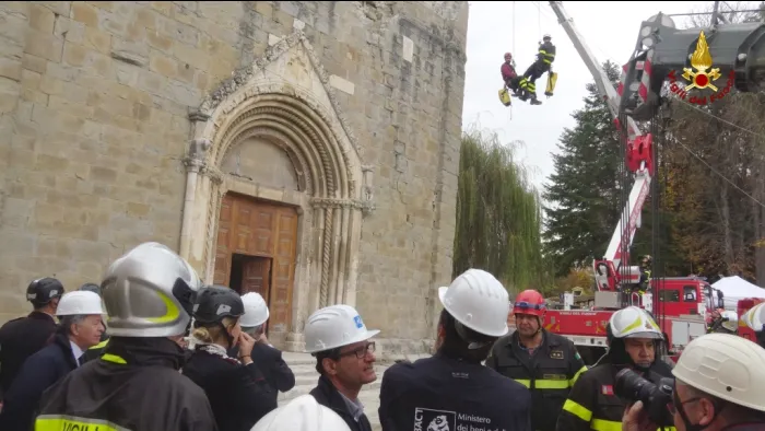 in linea le operazioni di recupero delle macerie per la futura ricostruzione della chiesa di s. agostino in amatrice