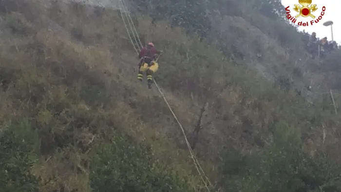 i vigili del fuoco, oggi sono intervenuti ad ancona per soccorrere una persona caduta da una rupe.
