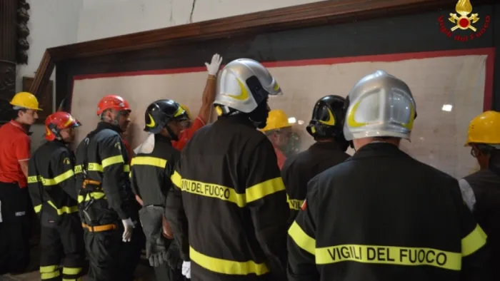 recupero estratto della sacra sindone dalla chiesa di s. francesco lesionata