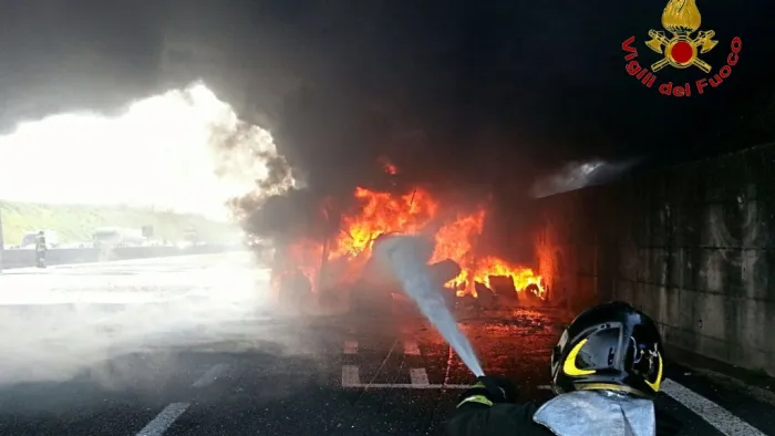 Capua CAPUA - INCENDIO TIR A1 CAIANELLO