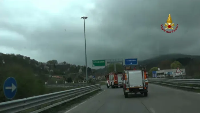 in linea le immagini relative all'incidente avvenuto sull'autostrada a6 direzione sud al km 116.