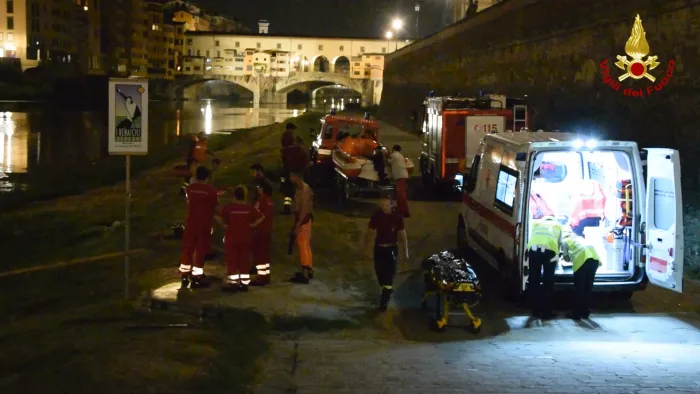 i vigili del fuoco di firenze hanno soccorso un uomo sull’argine dell’arno a firenze il 1 settembre 2015.