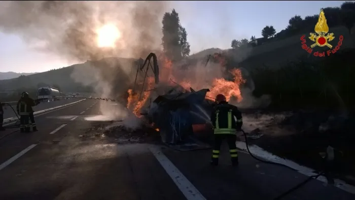 i vigili del fuoco di avellino sono intervenuti sull’autostrada a16 per l’incendio di un autoarticolato carico di olio vegetale. il mezzo si trovava nel…