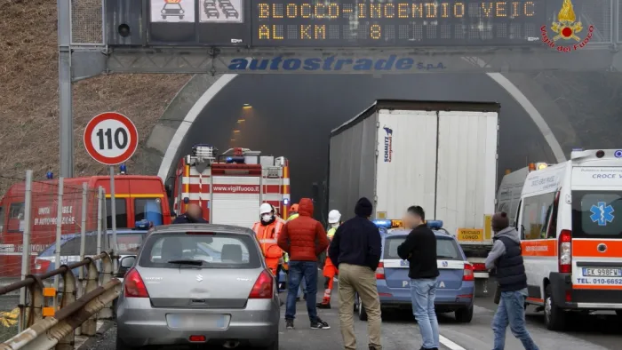 i vigili del fuoco di genova hanno effettuato un incendio di un veicolo sulla a26 all’interno della galleria del risso il 16 febbraio 2015.