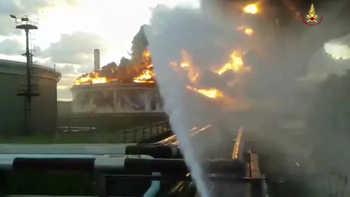immagini riferite all’incendio sviluppatosi questa notte nella raffineria mediterranea di milazzo (me)