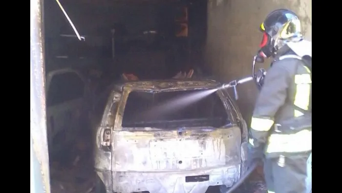 i vigili del fuoco sono intervenuti in varese per un’incendio di un’autovettura in un box, 13 giugno 2014.