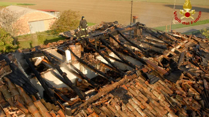 nella prima periferia di bologna, in località calderara, è andato a fuoco il tetto di una casa rurale. le squadre dei vigili del fuoco sono intervenute con 2…