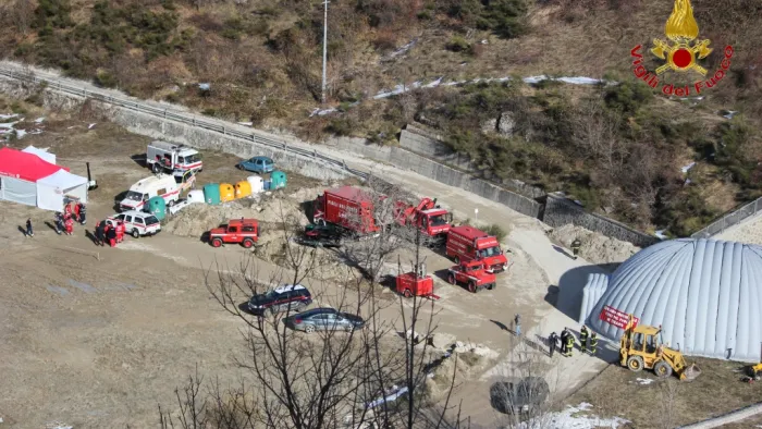 i vigili del fuoco di teramo hanno effettuato operazioni di logistica, vigilanza e supporto durante il brillamento di un ammasso roccioso.