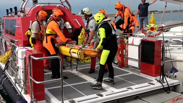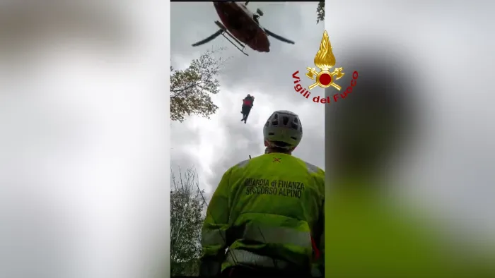 padre, madre e figlio piccolo salvati dai vigili del fuoco, bloccati al 6º piano, dopo l’incendio nella notte nell’hotel in cui alloggiavano a abano terme. a…