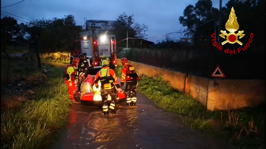 Nella notte i vigili del fuoco hanno soccorso 12 persone, tra cui una neonata, rimaste isolate in una frazione di Ozieri, nel Logudoro, a causa dell’innalzamento del livello dell’acqua provocato dallo straripamento del Riu Mannu.