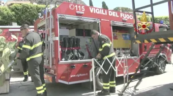 Taormina sabato 27 maggio 2017 - i vigili del fuoco al lavoro per garantire la sicurezza durante lo svolgimento del vertice