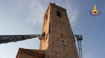 Norcia venerdì 01 luglio 2016 - s. pellegrino di norcia (pg) - messa in sicurezza del campanile della chiesa e recupero campane